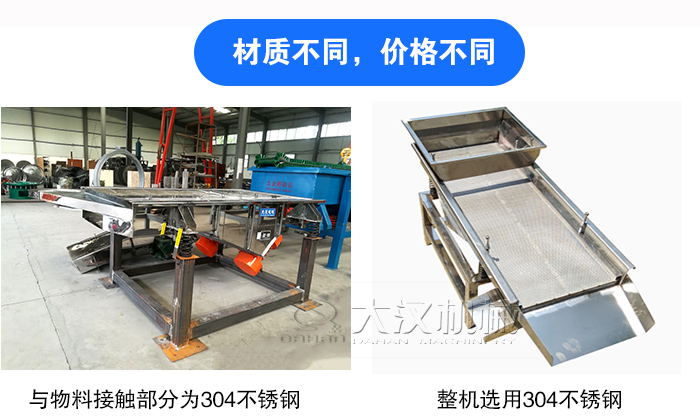 降溫直線篩直線振動篩材質主要有碳鋼與不銹鋼兩種:①與物料接觸部分為304不銹鋼材質,其他部分選用碳鋼材質;②整機選用304不銹鋼材質。不銹鋼材質的采購成本比碳鋼材質高,所以相對于第種方案,第二種會更加貴些。