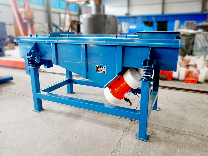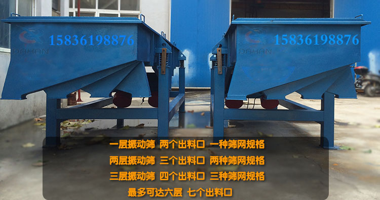 產品介紹: 塑料顆粒直線振動篩篩面尺寸寬500mm長2500mm兩層三個出料口碳鋼材質鐵質網架結構直線振動篩帶防塵蓋,加裝進料緩沖斗,用于石粉的篩分、分級。