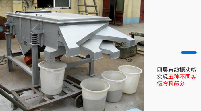 該機(jī)為DZSF-1030-4P直線振動篩,寬1000mm,長2500mm,整機(jī)為碳鋼材質(zhì)四層五出口,用于石粉的篩分分級,篩分精度高、處理量大。